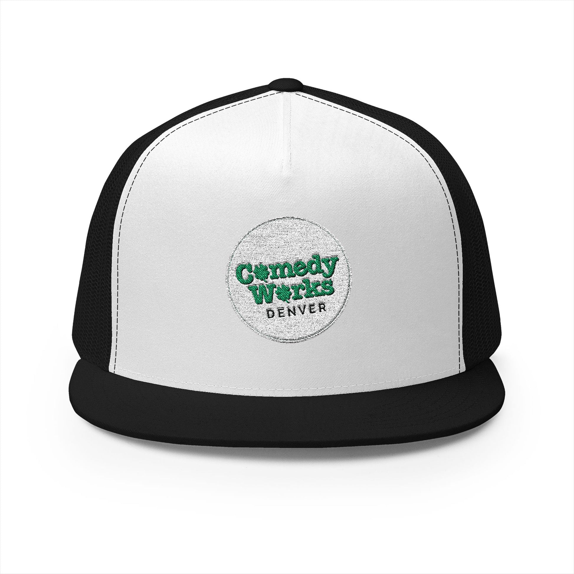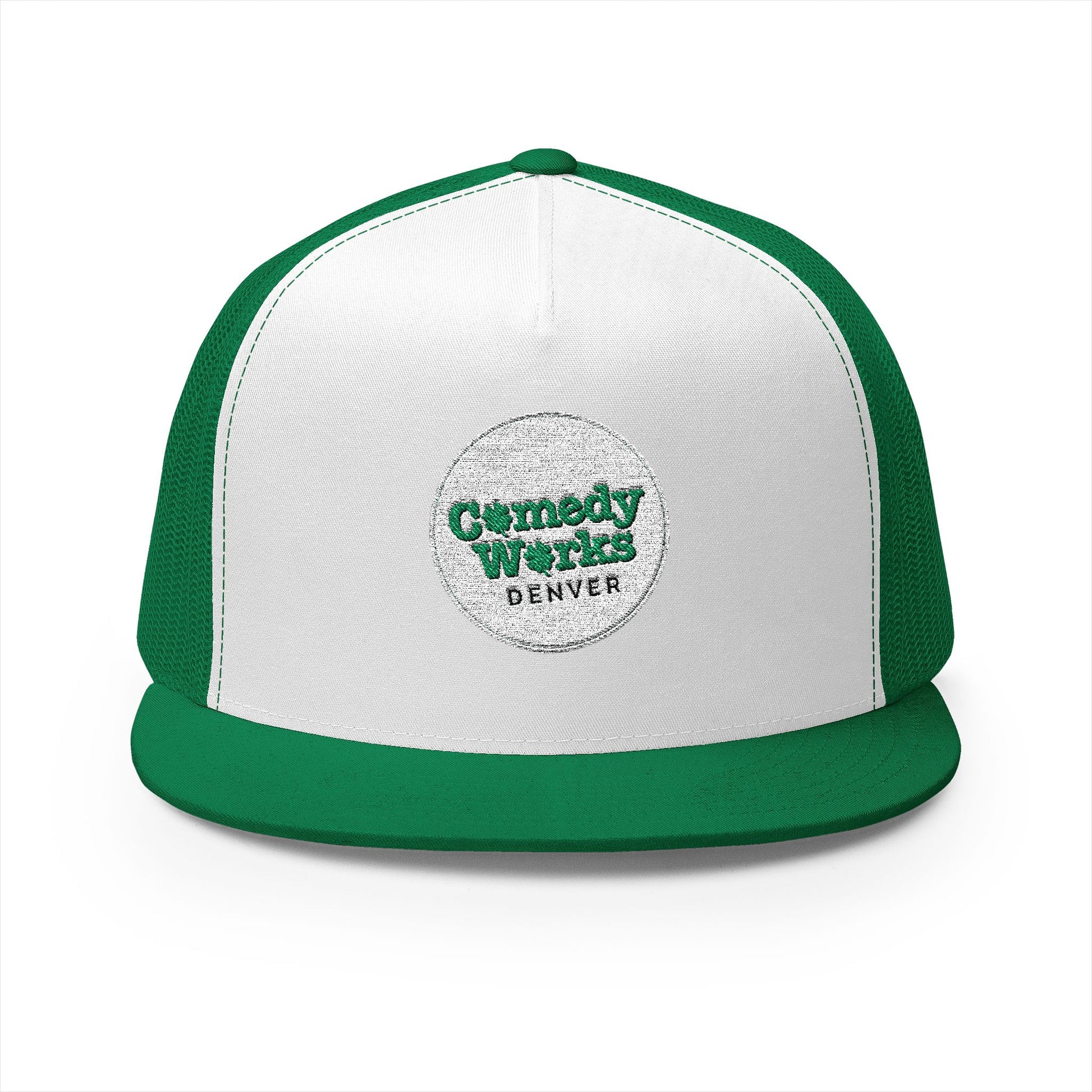 Comedy Works Embroidered St. Patrick's Day White Logo Trucker Hat